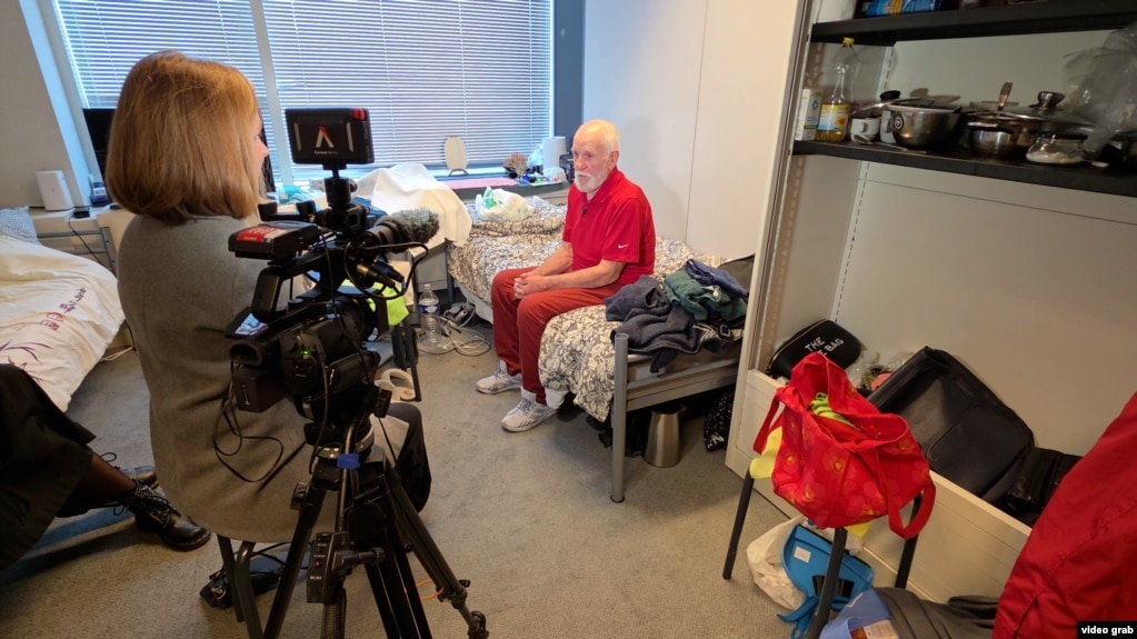 Чоловік живе у кімнаті прихистку, який організували на території офісного приміщення, що пустувало після пандемії коронавірусу. Прихисток фінансує місто Брюссель, опікуються мешканцями волонтери організації «Українські голоси» (Ukrainian Voices).