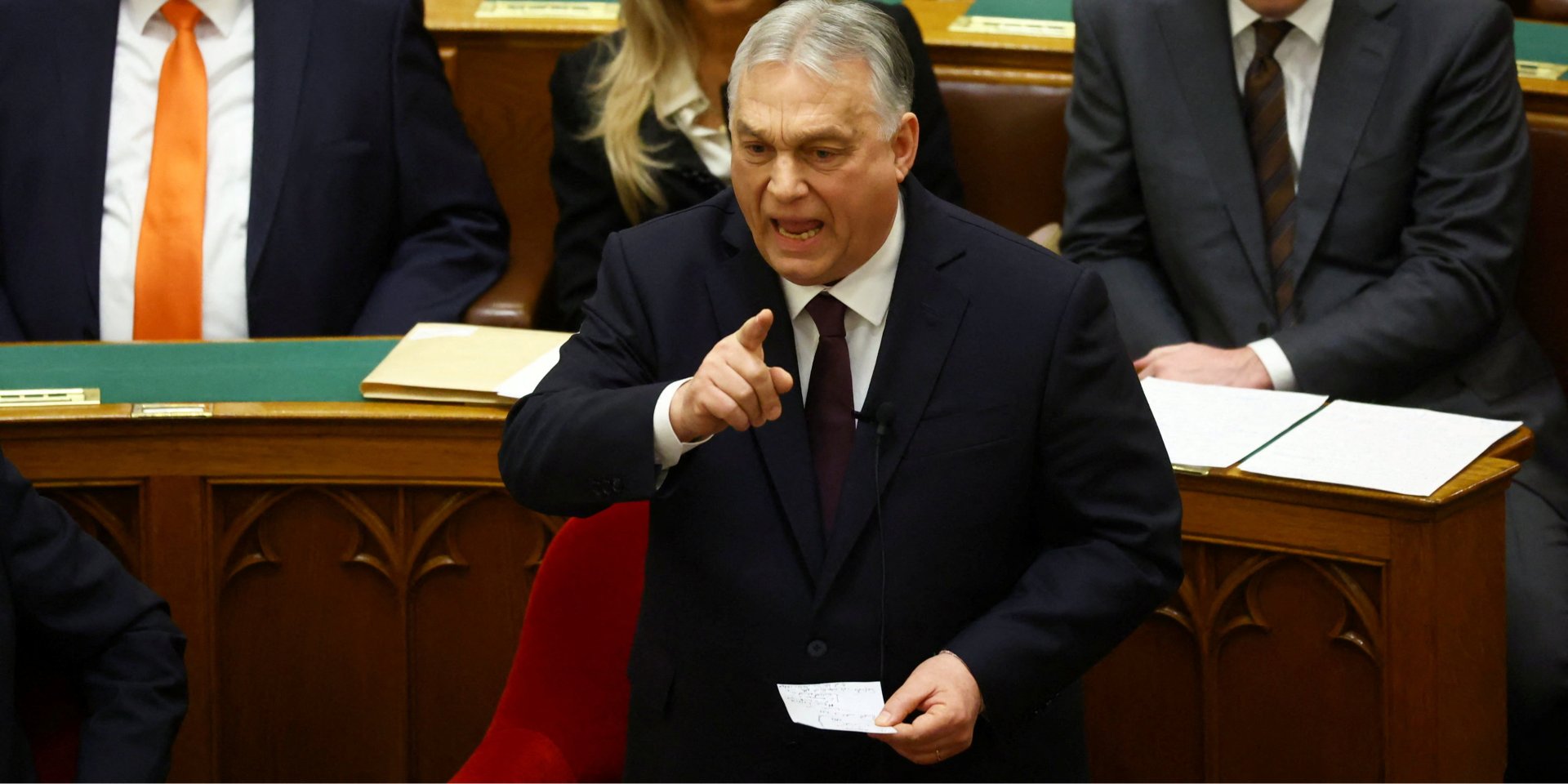 Прем'єр-міністр Угорщини Віктор Орбан виступає на відкритті весняної сесії національного парламенту в Будапешті, 23 лютого 2026 року (Фото: REUTERS/Bernadett Szabo)