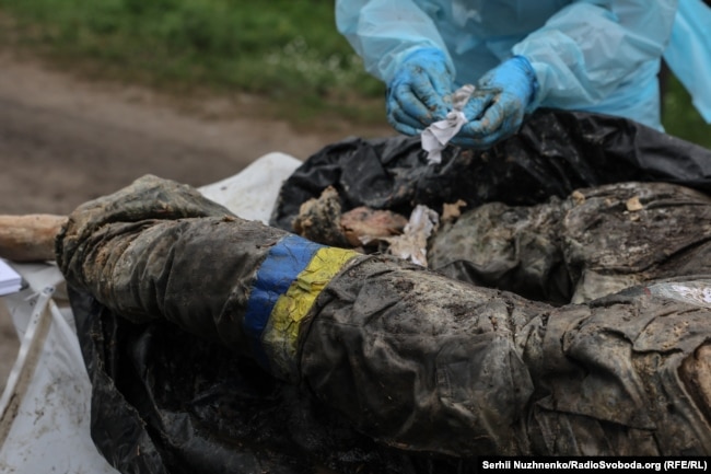 «Навіть коли зроблені всі заходи для ідентифікації, в тому числі проведення експертних досліджень, слідчий, прокурор можуть мати фактичні дані, які не можуть самі по собі дати результат, кому це тіло належить. По деяких тілах ми маємо інші зачіпки. Жетон, військова форма, особисті речі. Деякі тіла візуально можна впізнати і відповідно шляхом проведення певних заходів знаходять фотографії, відеоматеріал в соціальних пабліках країни-агресора. І одразу стає зрозуміло, що це тіло належить громадянину Російської Федерації, який як окупант перебував на нашій території.