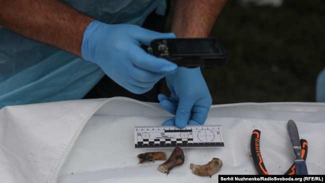 Слідчий під диктовку експерта записує кожну деталь, яку вдалося встановити експерту. Це може відіграти ключову роль при опізнанні тіла полеглого воїна, якщо його ім’я невідоме.