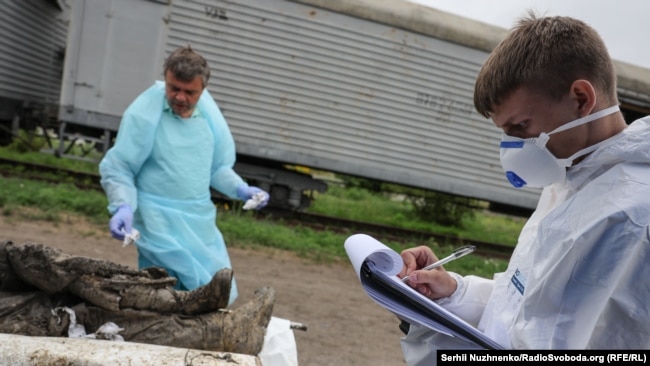 Із сірих вагонів дістають білі мішки. По одному кладуть на каталку. Везуть до наметів. Тут працюють спеціалісти. Їхнє завдання – взяти зразки для молекулярно-генетичної експертизи. У народі кажуть – ДНК.